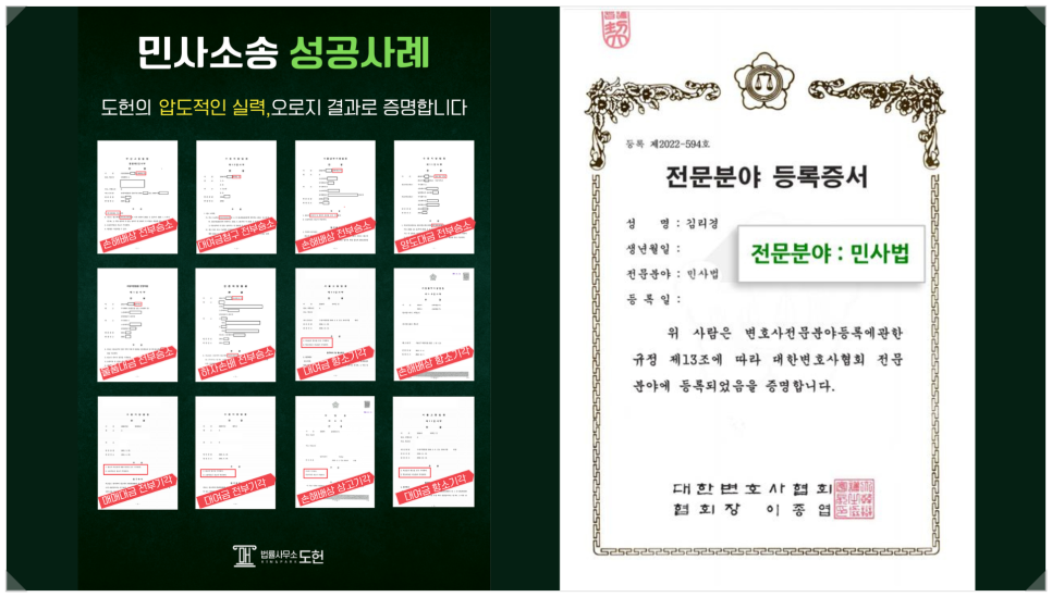 ※ 모든 성공사례는 법률사무소 도헌이 직접 수행한 실제 성공사례입니다.