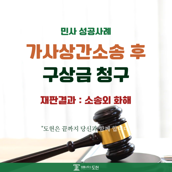 소 제기 이후 상대방은 의뢰인에게 연락을 해와 구상금 청구 소송 제기에 대한 불만을 제기하며 아내와 이혼할 당시 자신도 위자료를 지급했다며 하소연했습니다.