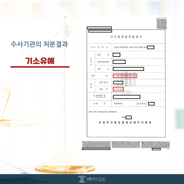 담당 검사는 남양주형사변호사 법률사무소 도헌 변호사들의 주장을 받아들여 의뢰인의 재범 가능성이 낮은 점과 다시는 음주운전을 하지 않기 위하여 관련 교육 이수와 봉사활동을 하고 있는 점 등의 참작할 만한 사유가 있으며 의뢰인의 생계유지를 감안하여 기소유예 처분을 내렸습니다.