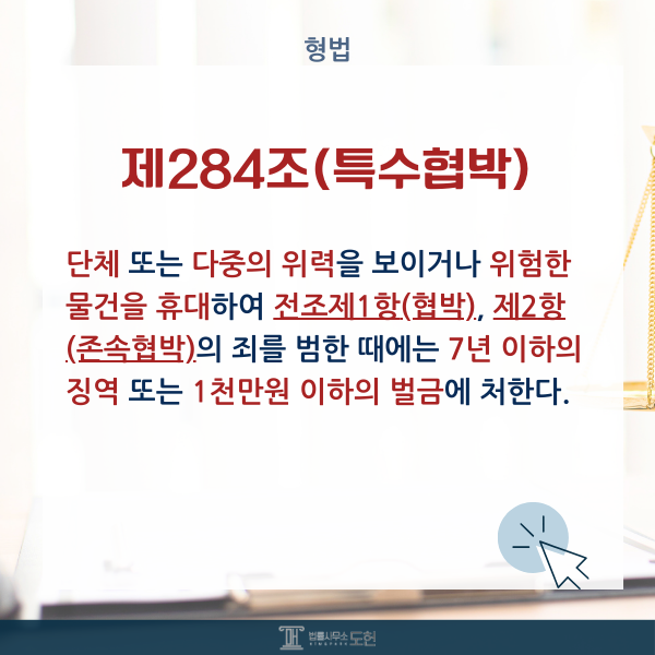 이번 시간에는 법률사무소 도헌이 처리했던 보복운전으로 인해 특수협박 혐의로 기소되어 1심에서 징역형의 집행유예 판결을 받고 항소심을 앞두고 있었던 의뢰인의 사건에 관해 말씀드리겠습니다.