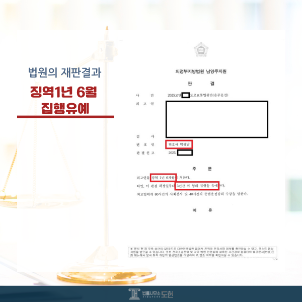 결국 법원은 실형이 아닌 징역 1년 6개월에 집행유예 3년을 선고하여 의뢰인이 구속을 면하고 가족의 품으로 돌아갈 수 있도록 판결했습니다.