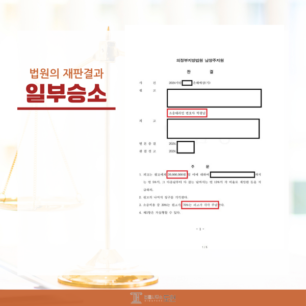 그럼에도 불구하고, 감정적인 대응 대신 침착하게 법률적 절차를 밟아 상간소송을 제기하였고, 남양주이혼전문변호사 법률사무소 도헌의 변호사들과 함께 사건을 차근차근 준비해나간 결과, 조금이나마 의뢰인의 마음의 상처를 회복할 수 있는 판결을 이끌어낼 수 있었습니다.