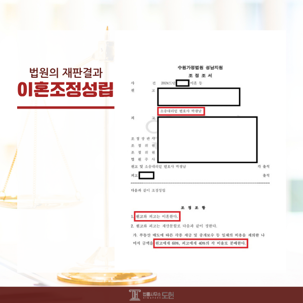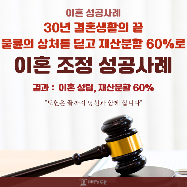 그리고 결국 저는 위자료는 받지 않되 재산분할 비율을 60%로 인정받는 조건으로 이혼조정을 마무리할 수 있었습니다. 30년의 인생을 정리하는 일은 여전히 쓰라렸지만 그래도 억울하지는 않았습니다. 제 노력과 인생이 결코 헛되지 않았다는 걸 법적으로 인정받았으니까요.