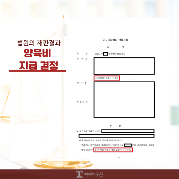 '법률사무소 도헌'의 조력 - 매월 80만 원 양육비 지급 결정