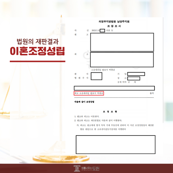 재판부에서도 이 조정안을 현실적이고 타당한 안으로 받아들여 사건은 소송이 아닌 이혼조정으로 마무리될 수 있었습니다.