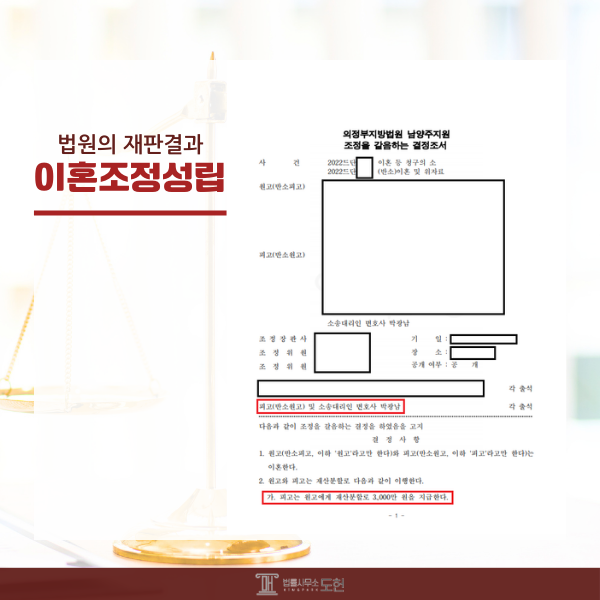 을 통해 최종적으로 3천만 원 분할금이라는 현실적이고 유리한 결과를 이끌었습니다. 유사한 사안으로 고민이 있으시다면 전문가와의 상담은 필수적입니다. 남양주이혼변호사 법률사무소 도헌은 언제든 도움을 드릴 준비가 되어 있습니다.