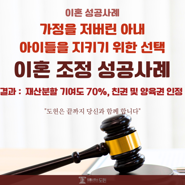 20년 동안 의뢰인이 가정을 꾸리고 경제적 기반을 닦아온 점, 아내가 가정에 소홀하고 외도까지 지속한 점을 고려하면 기여도는 외뢰인 쪽이 명백히 더 높았습니다. 구리이혼변호사 법률사무소 도헌은 장기간의 혼인·아내의 유책성·경제적 기여도를 객관적 자료로 정리해 재산분할 비율을 70%로 끌어올리는 전략을 채택했습니다.